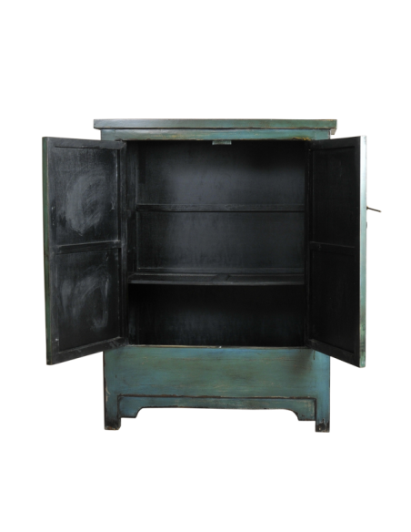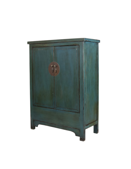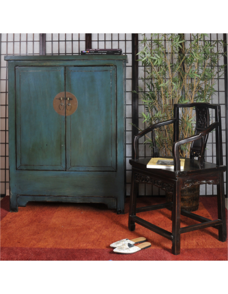 Large, et aux lignes épurées, l'armoire CHAO bleue est idéale pour vos rangements d'objets encombrants. Sa hauteur relativement faible vous permettra de laisser le sommet de votre mur libre pour aérer votre espace, ou de compléter par un tableau, un miroir ou un bibelot. Finition et peinture traditionnelle de Ningbo, cette armoire chinoise est un très bon compromis pour donner une atmosphère d'ailleurs à votre intérieur. Disponible en rouge et en bleu.