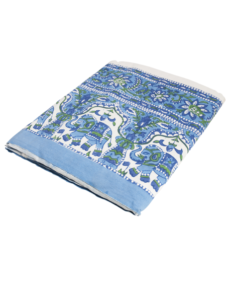 Copertura a letto o jete de canape di cotone nei toni del blu con i modelli di lphants.