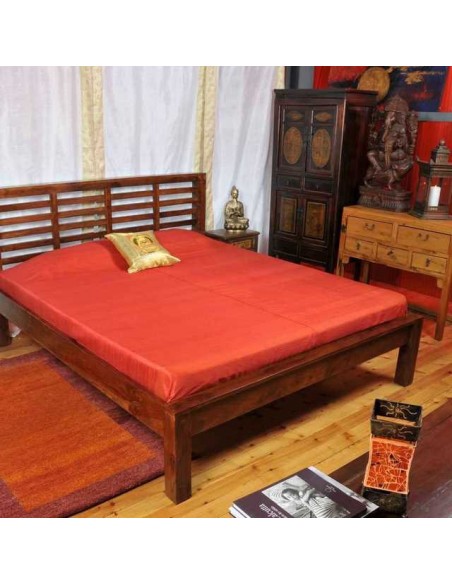 Ce magnifique couvre-lit en soie sauvage avec le dos en coton convient à un lit double. La fermeture éclair au dos permet de le garnir d'une fine couette.