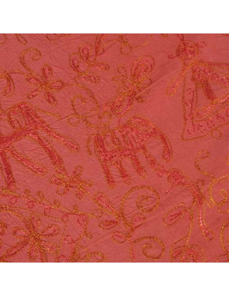 Da appendere o centrino in cotone ricamato con fili dorati. Giallo, arancione, viola,