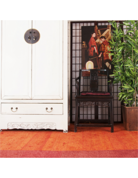 Gli armadi per matrimoni che offriamo sono stati realizzati in Cina dai nostri artigiani nel rispetto delle tradizioni. Leggermente adattato alle nostre esigenze moderne, l'armadio GONGZHU offre uno spazio di archiviazione esclusivo grazie ai suoi tre ripiani e due cassetti. Accoglierà i tuoi pezzi più eccezionali. Ideale in una camera da letto, questo armadio può essere integrato anche in un ingresso e portare calore e comfort alla tua casa. La finezza delle finiture sublima il tutto. La lacca, le incisioni eseguite sul frontone inferiore e gli accessori in bronzo concedono un certo estetismo.