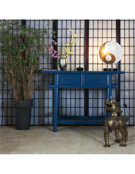 Cette lampe YIN YANG est aussi jolie éteinte qu’allumée. Elle amènera une ambiance naturelle à votre pièce et la décorera avec esthétisme. De conception artisanale et indonésienne, chaque pièce est unique. Elle est composée de nacre et de fibre naturelle. Son socle est une pièce de bois ronde peinte en noir. Elle concède une touche chaleureuse, chic et authentique.