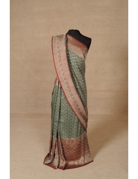 Ce Sari est en brocard de soie avec broderies et parfois fils d'or ou d'argent. Chez nous hormis le faite de le revetir il est tres utilisé dans la décoration d'intérieur.