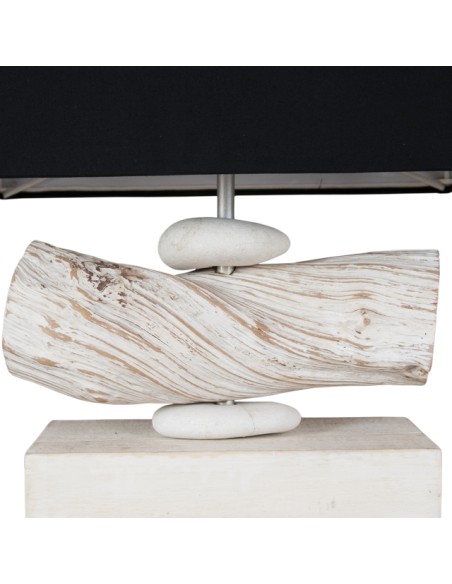Cette lampe SERAM est aussi jolie éteinte qu’allumée. Elle amènera une ambiance naturelle à votre pièce et la décorera avec esthétisme. De conception artisanale et indonésienne, chaque pièce est unique et composée d'une base rectangulaire, d'un pied de galets et de bois flotté peints blancs et d'un abat-jour en tissus noir ou une l'autre couleur. Elle concède une touche chaleureuse, chic et authentique.