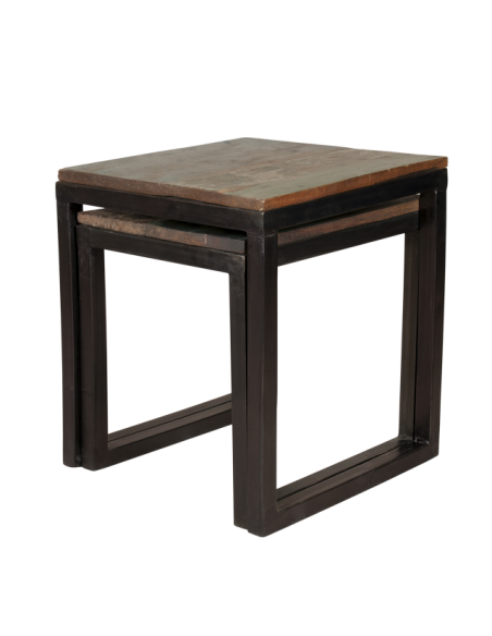 The IRUMPU stool offers a nice seat or a nice surface to put down objects. Usable alone or in sets of two, these pieces fit together like nesting tables. Made by our craftsmen in India, these stools have a recycled wood top and a black painted metal foot. Ideal in a hallway or living room, this stool provides additional seating when receiving a large number of guests and turns into a small table that can accommodate plants and other decorative items the rest of the time.