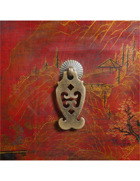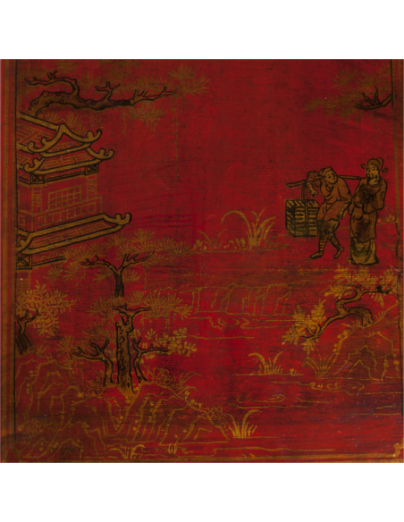 Chinese cabinetmakers mainly use elm in their furniture design. Stronger and more flexible than oak, elm is a firm, fairly hard wood with a magnificent veal. The "painted leather" finish is a traditional Chinese technique which consists of covering the furniture with bonded leather ranging from red to burgundy depending on the exposure and the finish of the varnish and painting different patterns on it. The latter mainly represent scenes from ancient times, flowers and animals. The interiors are covered with reproductions of lunar calendars. The rendering of these pieces of furniture is unique both visually and in terms of touch