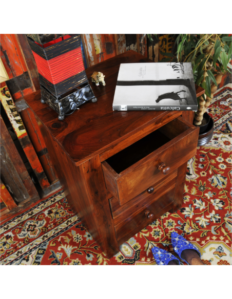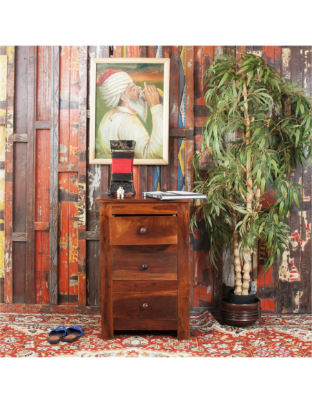 Le Sheesham, ou bois de rose des Indes est un bois aux teintes sombres, marbré de noir et de pourpre. Originaire du Nord de l'Inde, ce bois a une texture uniforme et offre des tonalités allant de l'or au brun foncé. Extrêmement dense, il est l'équivalent oriental du noyer massif. Très résistante, cette matière noble demande peu d'entretien et saura résister aux assauts du temps. Tous les meubles que nous proposons sont en bois massif et faits main par des artisans du Nord de l’Inde. Quelques petites différences peuvent exister rendant chaque pièce singulière. En plus d’avoir un meuble réalisé avec soin et savoir-faire, vous aidez des artisans à perpétuer leurs traditions.