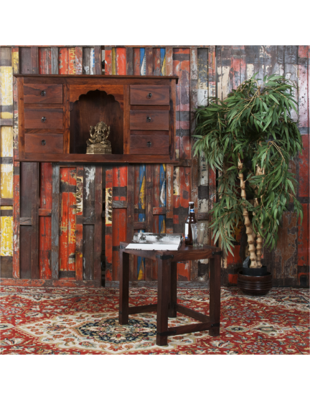 Sheesham, or Indian rosewood, is a dark-hued wood marbled with black and purple. Native to northern India, this wood has a uniform texture and offers tones ranging from gold to dark brown. Extremely dense, it is the oriental equivalent of solid walnut. Very resistant, this noble material requires little maintenance and will withstand the onslaught of time. All the furniture we offer is made of solid wood, handmade by artisans from North India. A few small nuances can take place and make each piece authentic and unique. In addition to having a piece of furniture made with care and know-how, you help craftsmen to perpetuate their traditions.