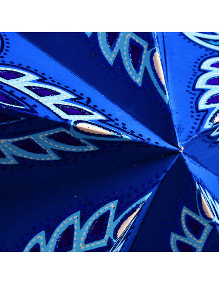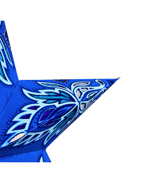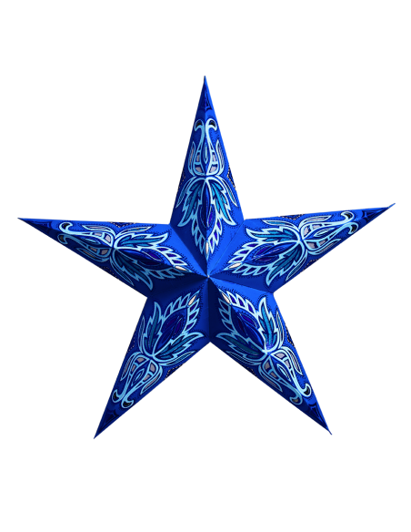 La suspension est un élément indispensable pour apporter de la luminosité à votre intérieur selon les moments de la journée. Fonctionnelle, cet élément confère aussi un design à la pièce. La suspension allie fonctionnalité et décoration quelque soit le lieu et l'heure. La belle étoile de papier recyclé de couleur bleue avec des motifs est faite main par nos artisans indiens et brillera de mille feux dans votre intérieur ou votre jardin. Elle apportera originalité et éclat sans commune mesure.