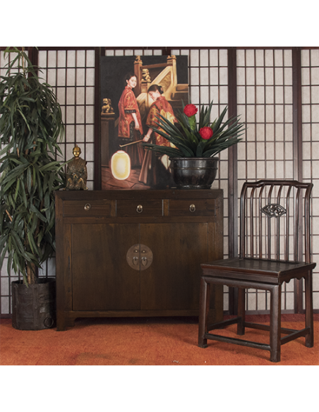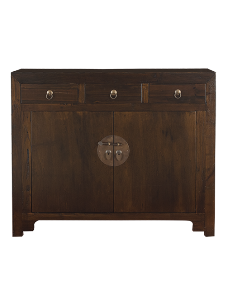 Das Buffet ZHOU ist mit seinen klaren Linien ein schönes Beispiel moderner und solide gestalteter chinesischer Möbel. Optimiert für maximalen Stauraum bieten Ihnen drei Schubladen den nötigen Platz für kleinen Gegenstände, während sich hinter den Türen zwei großen Stauräumen befinden. Er wurde nach traditioneller Art bemalt und seine schöne Farbe passt sich jeder Art von Umgebung an.