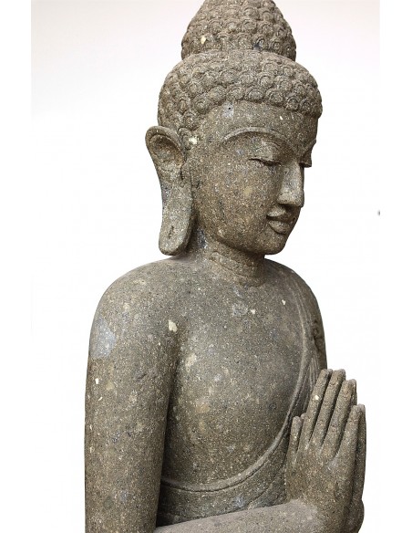 The statue easily embellishes and refreshes your home. Trendy decor idea, this accessory is not new. In fact, since Antiquity, statues have always held an important place in the life of men. Whether they are funeral objects, religious objects or devotions, the statue today serves as a decoration. Bringing 'that je ne sais quoi' to your interior and exterior, this ancestral practice and this tendency are not about to decrease. Succumb to the charm of our sublime representation of a standing Buddha. The atmanjali mudra is represented here, the position of the hands in prayer. The gesture of joining hands in front of the chest strengthens the inner gathering and ensures harmony, balance, calm and peace. In India, it is also a gesture of greeting and gratitude. Made of volcanic stone by our craftsmen in Indonesia, the latter will bring to your home a luminous atmosphere full of serenity.