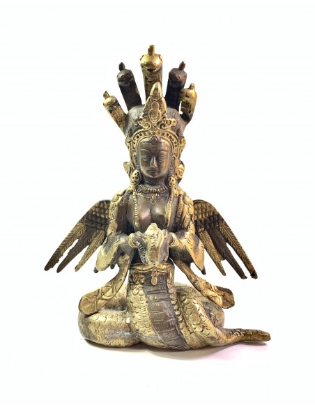 Naga Kanya est la reine des serpents dans l’hindouisme. Les Nagas sont très importants dans les religions hindoues et bouddhiques. Ce sont des serpents soupçonnés de résider dans le monde souterrain et qui exercent une influence spirituelle sur le monde et les Hommes. Finement travaillée à la main, cette statuette est tout en détail. Très bel élément de décoration, il viendra égayer une commode, un meuble d'entrée ou un tout autre espace.
